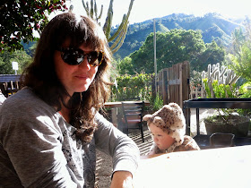 So, we got exhausted. But, the hike was just gorgeous - through oak ringed meadows, cool moist redwood groves, over the Big Sur River, along Pfieffer Creek, up above the redwoods past buckeye and manzanita in the sun - and finally to the falls.